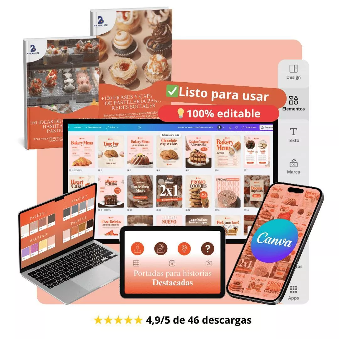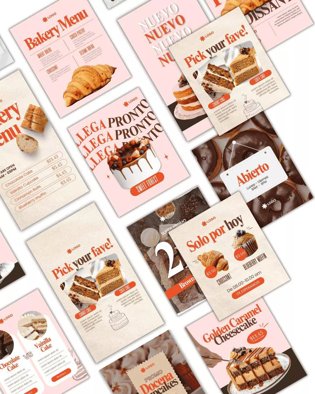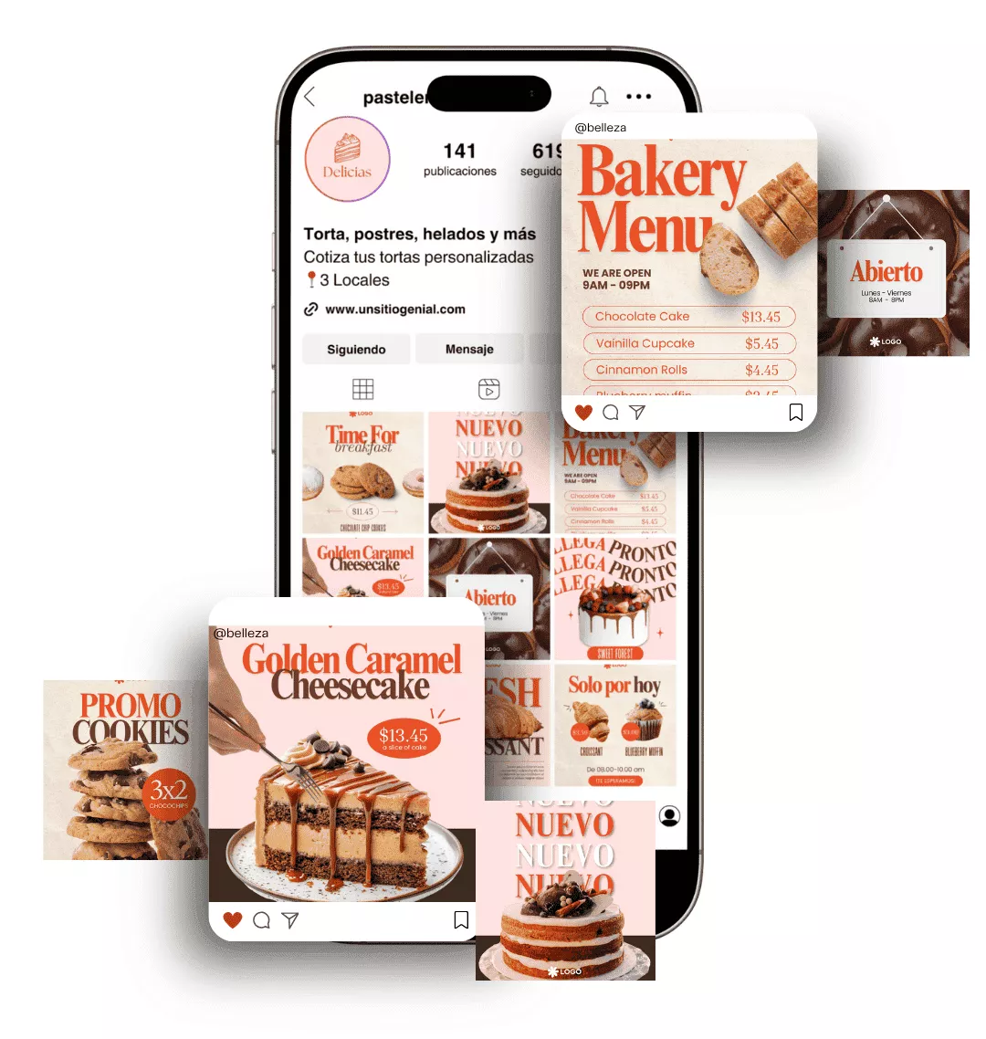 Con Diseño Belleza PRO tendrás más de 60 diseños estratégicos para negocios de pastelería, listos para editar y publicar sin complicaciones, ahorrando horas de trabajo y evitando el estrés de quedarte sin ideas.